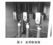 (2)穿墻套管下部與電纜銅搭子導(dǎo)體部分聯(lián)接選用軟聯(lián)接過(guò)渡,如圖9所示,可以去除硬聯(lián)接產(chǎn)生的應(yīng)力,一同消除電纜通電后產(chǎn)生的電動(dòng)力,隔絕了對(duì)穿墻套管的應(yīng)力效果。